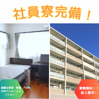 | 待遇 | ・交通費全額支給 ・日払い、週払い対応OK ・寮費無料 ・家具家電付きのワンルームマンション完備 ・制服貸出 ・資格取得制度あり 【社会保険】 ・厚生年金 ・健康保険 ・雇用保険 ・労災保険 【受動喫煙対策】 ・屋内原則禁煙(ただし、適用除外の場所あり) |